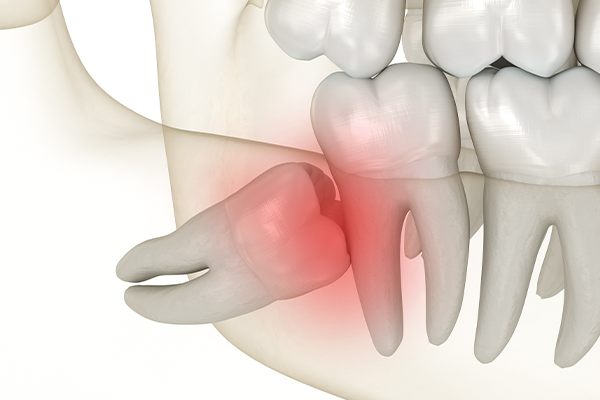 누운 사랑니가 옆 어금니를 압박하거나 손상시키는 분
