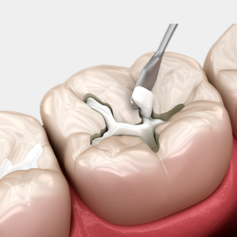 충치 삭제 후 빈공간을 레진으로 충전합니다. -