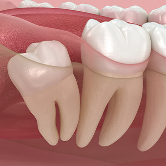 누운 사랑니가 옆 어금니를 압박하거나 손상시키는 분